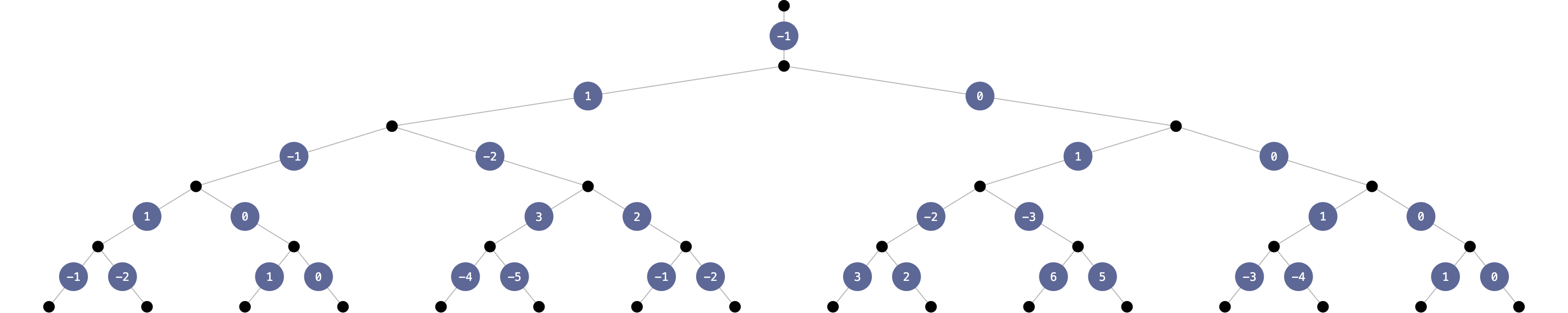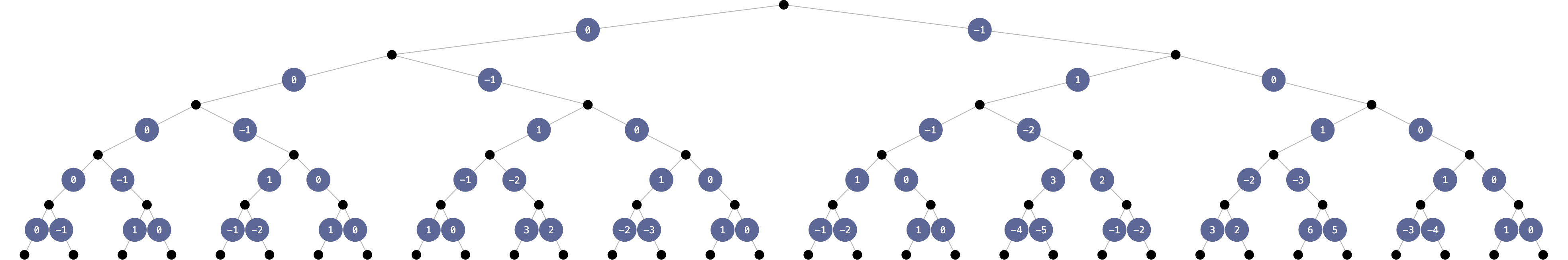In this view, the entire left half of the visualization becomes obsolete. We can visualize the tree better by only showing values $R(x_0, \ldots, x_k)$ with $x_0 = 1$ (essentially the right side of the previous visualization):